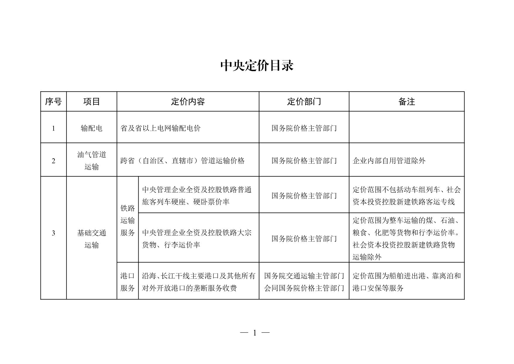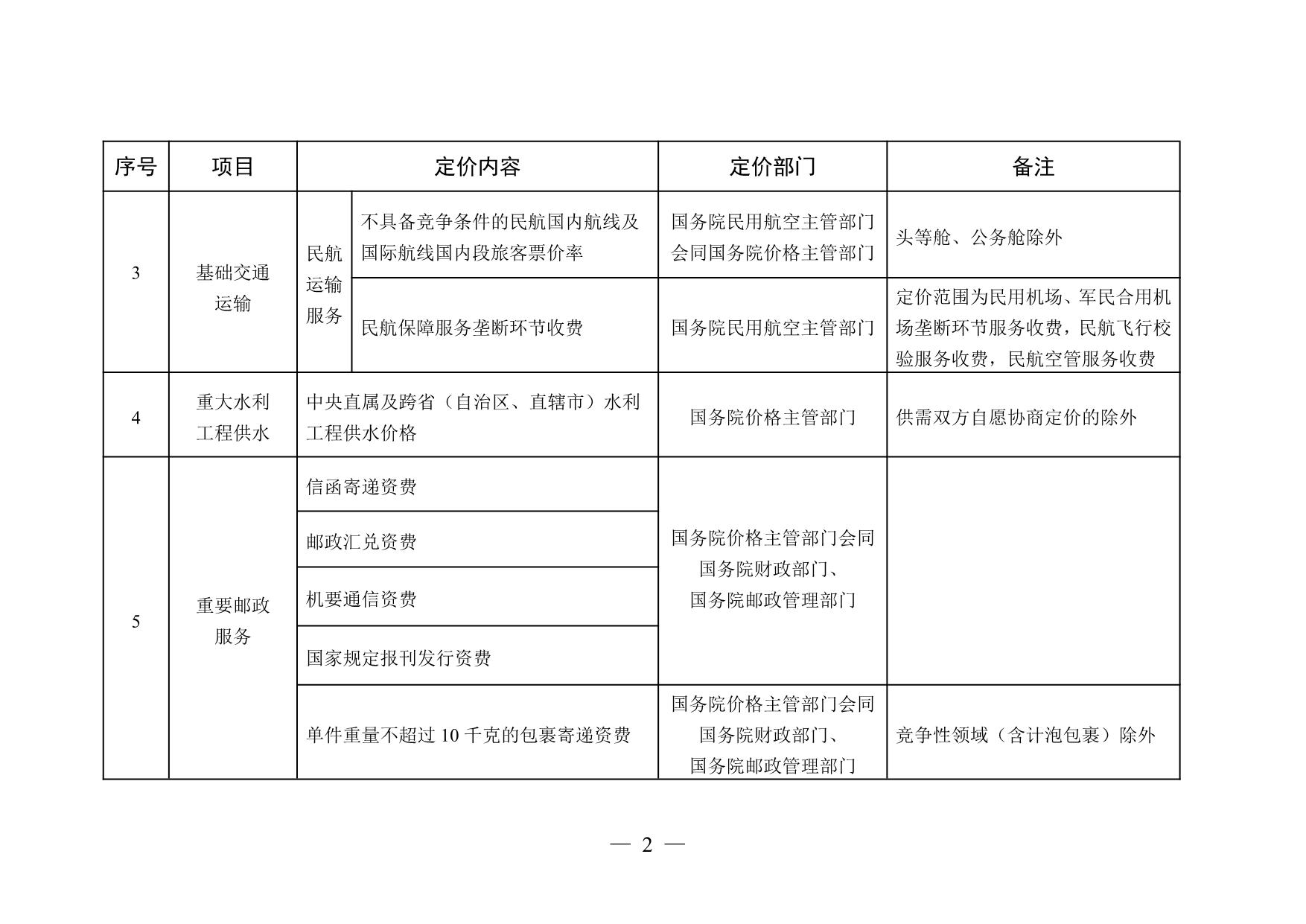此外,还对基础交通运输、重大水利工程供水、重要邮政服务等项目部分表述进行修改完善,推进定价项目清单化、规范化。