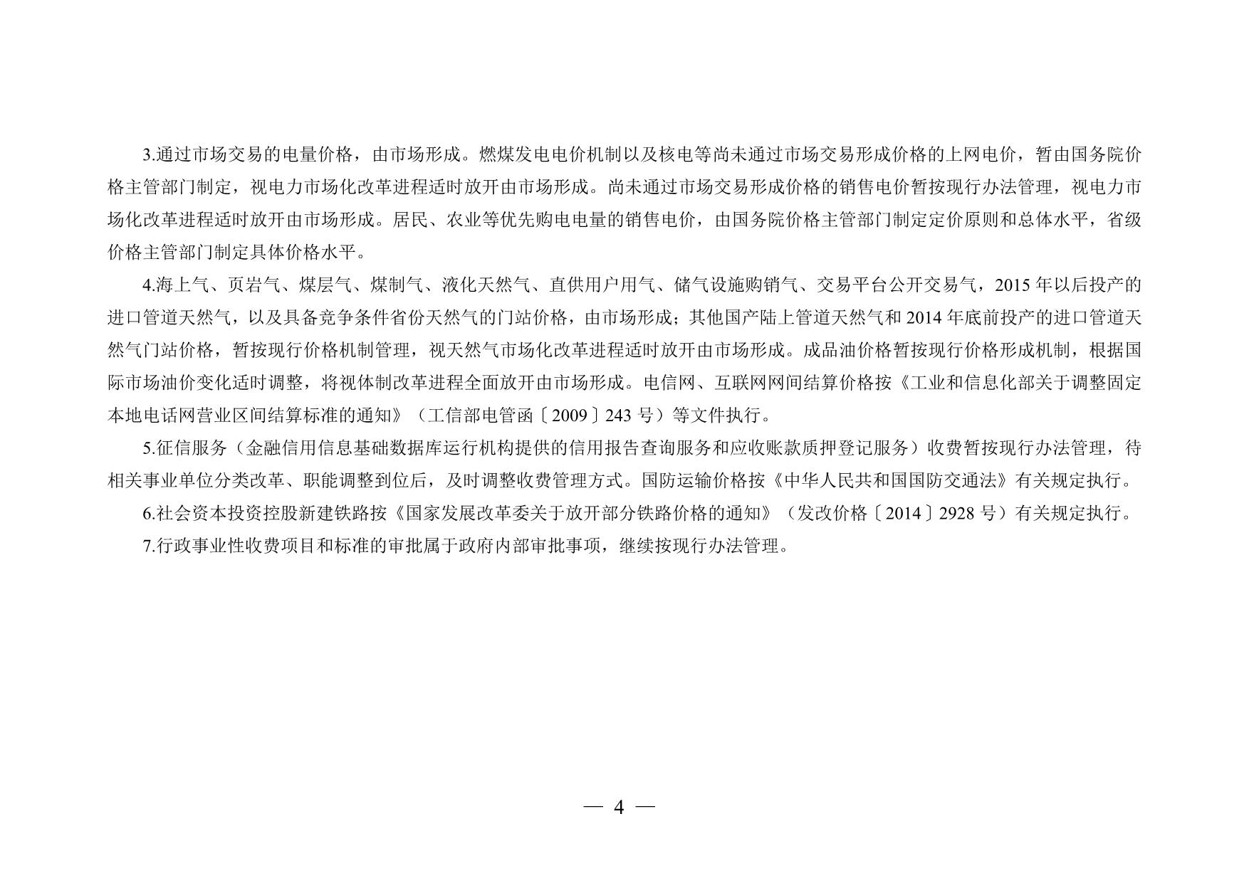一是删除近年来已经明确放开价格或取消收费的定价项目。包括已经放开的部分铁路客运、部分铁路货运、部分民航旅客票价、计泡包裹寄递资费、银行卡刷卡收单服务费、食盐价格、增值税税控系统产品及维护服务价格、代办中国公民因私签证服务价格、国家储备糖和储备肉交易服务价格,以及已经明确取消的商业银行取现收费、渔港收费、国内学历学位认证服务收费、公民身份认证服务收费。
