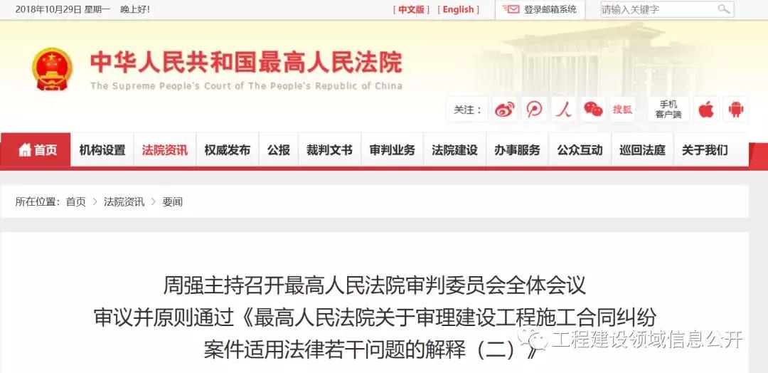 《建设工程施工合同解释(二)》已获最高院通过